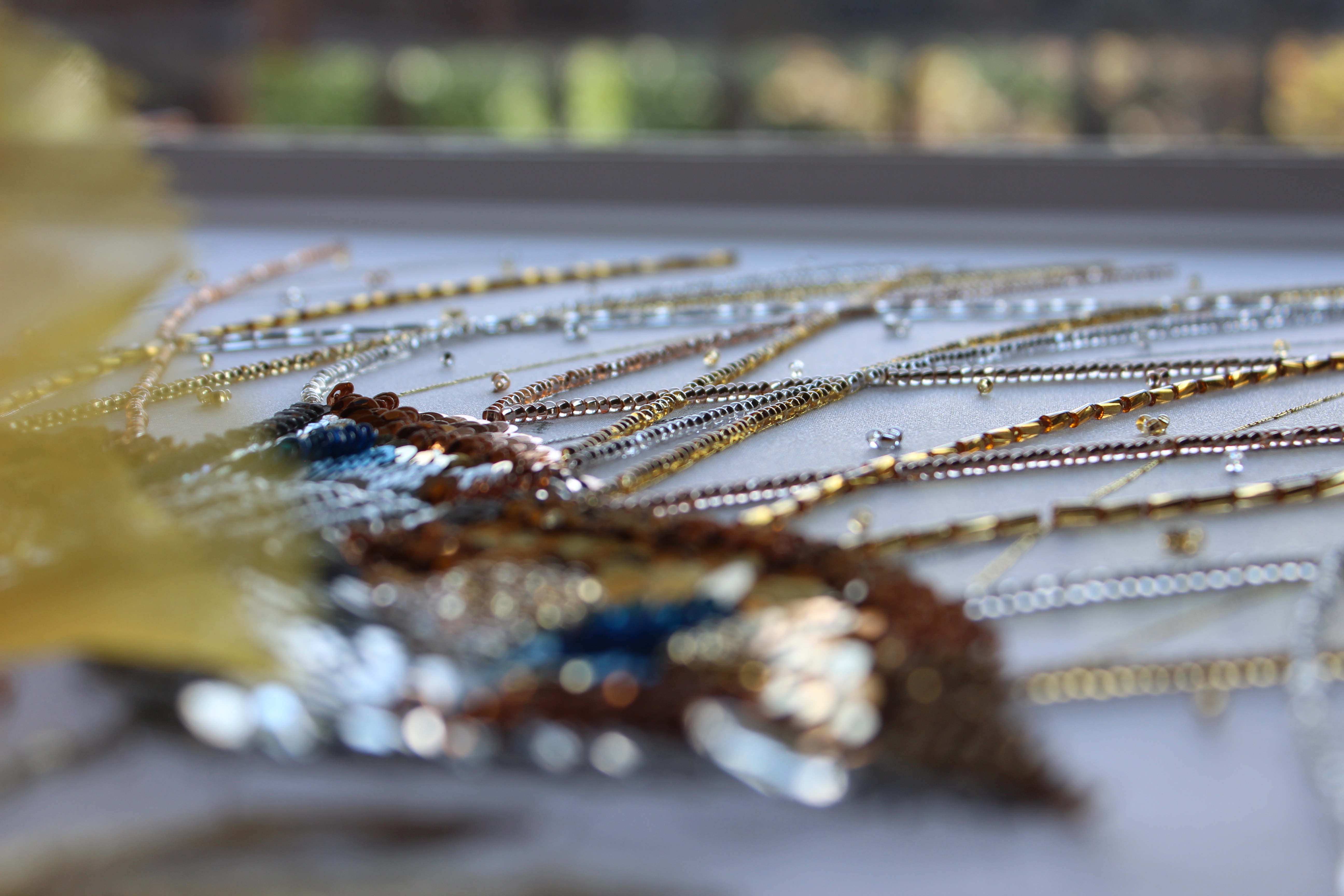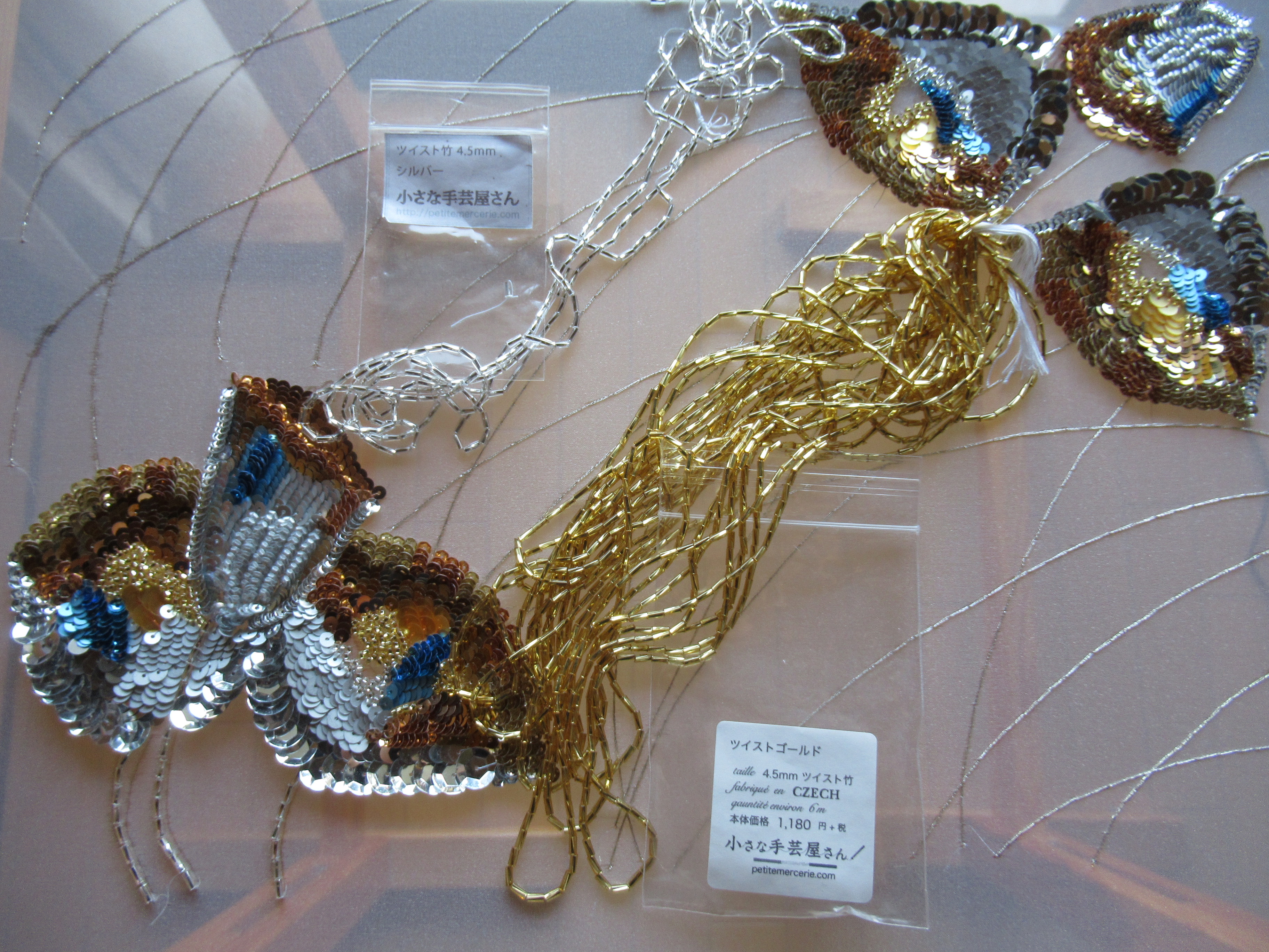 チューブ型の金銀竹ビーズで光のシャワー効果を表現