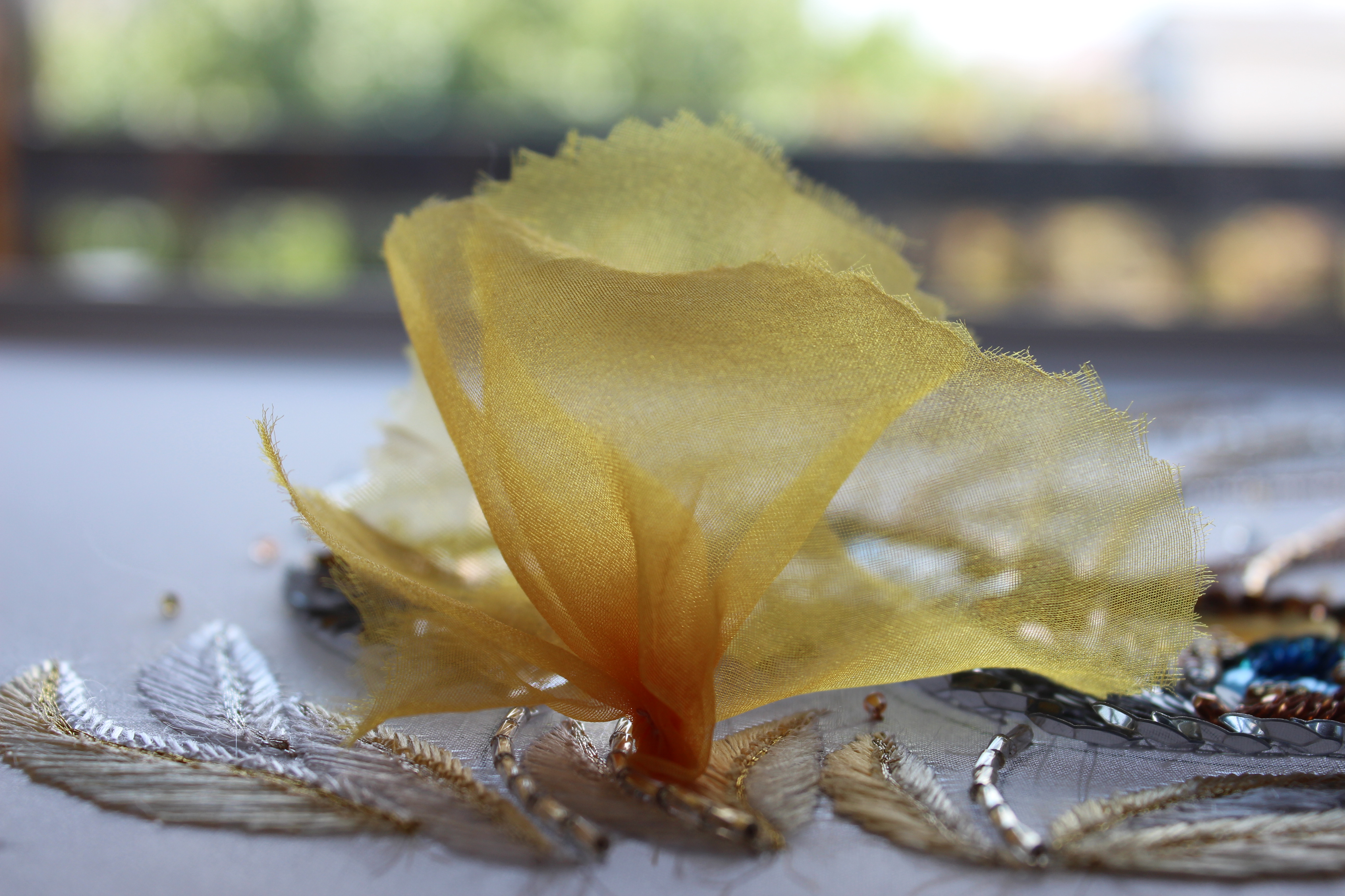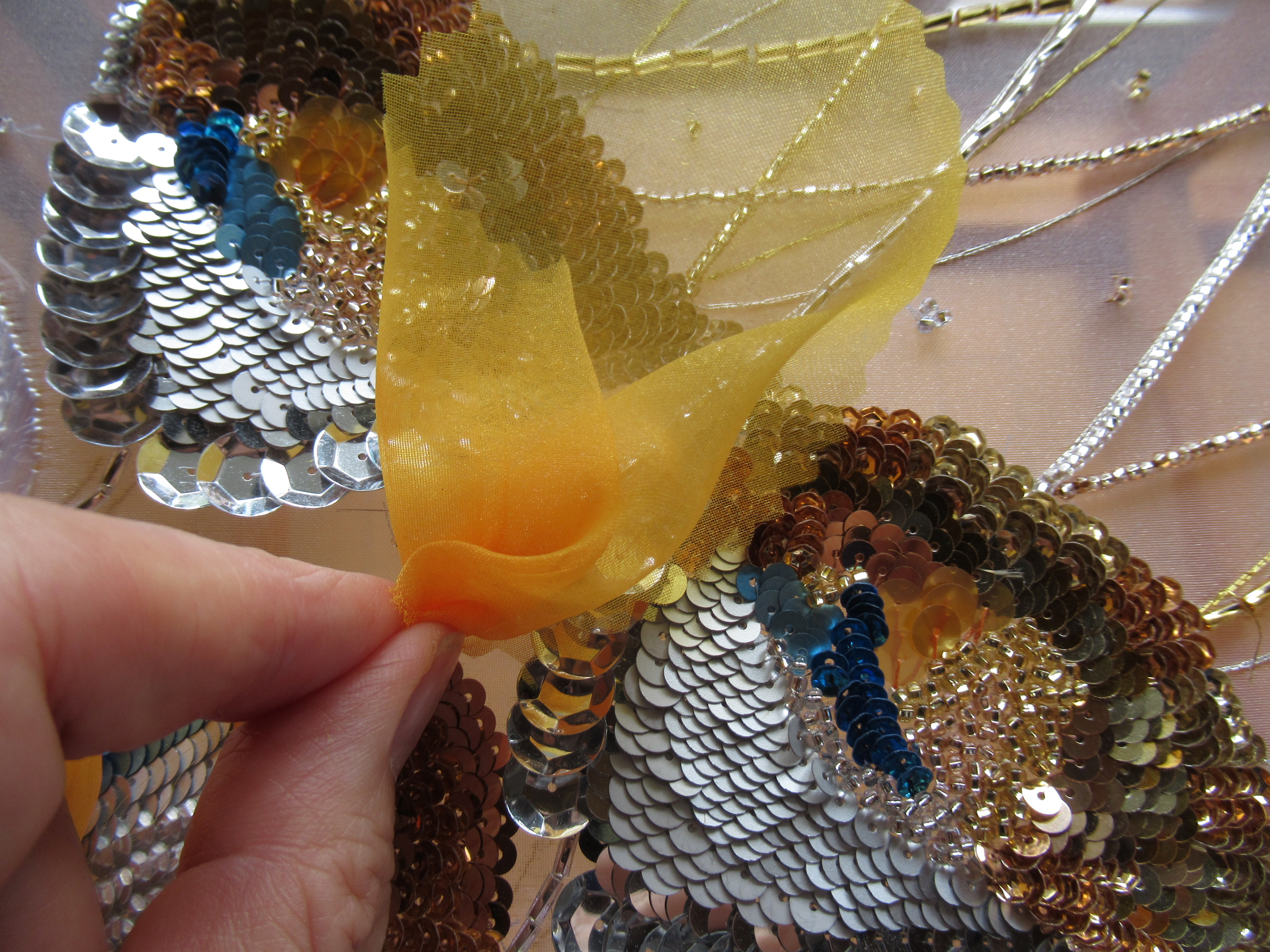 オレンジのオーガンディ布で華やかさをプラス
