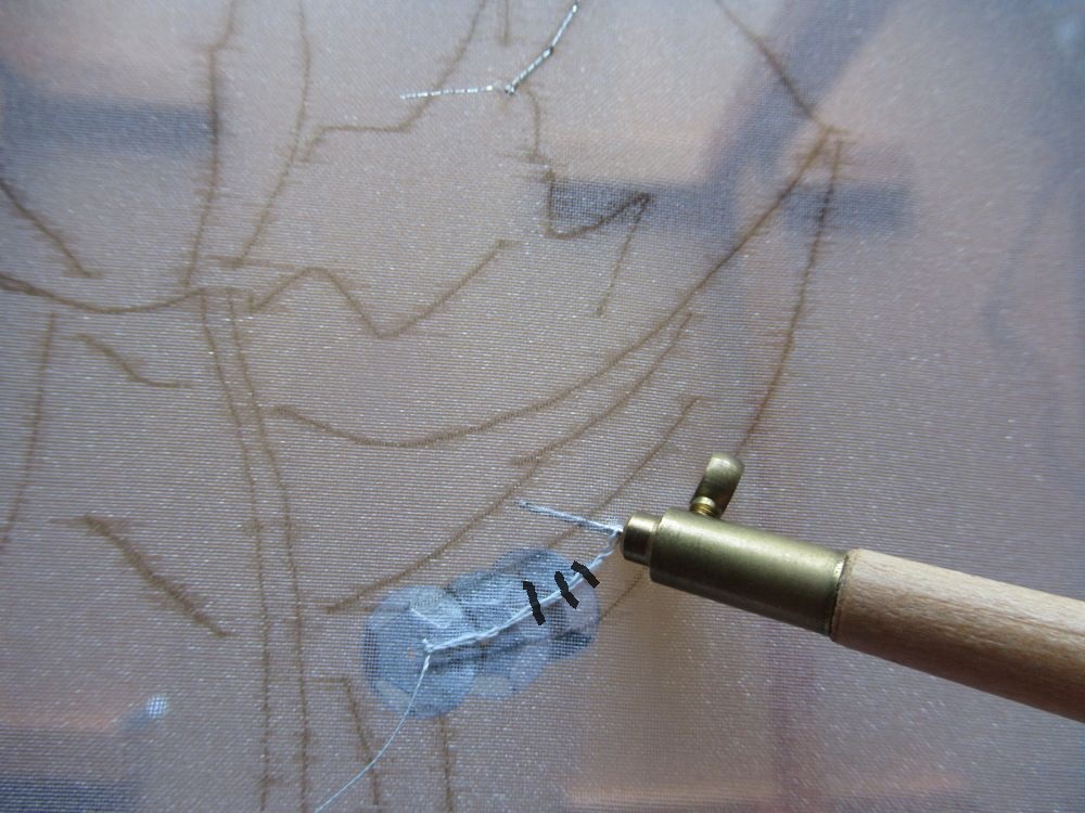 次に絹糸で葉っぱを作ります。