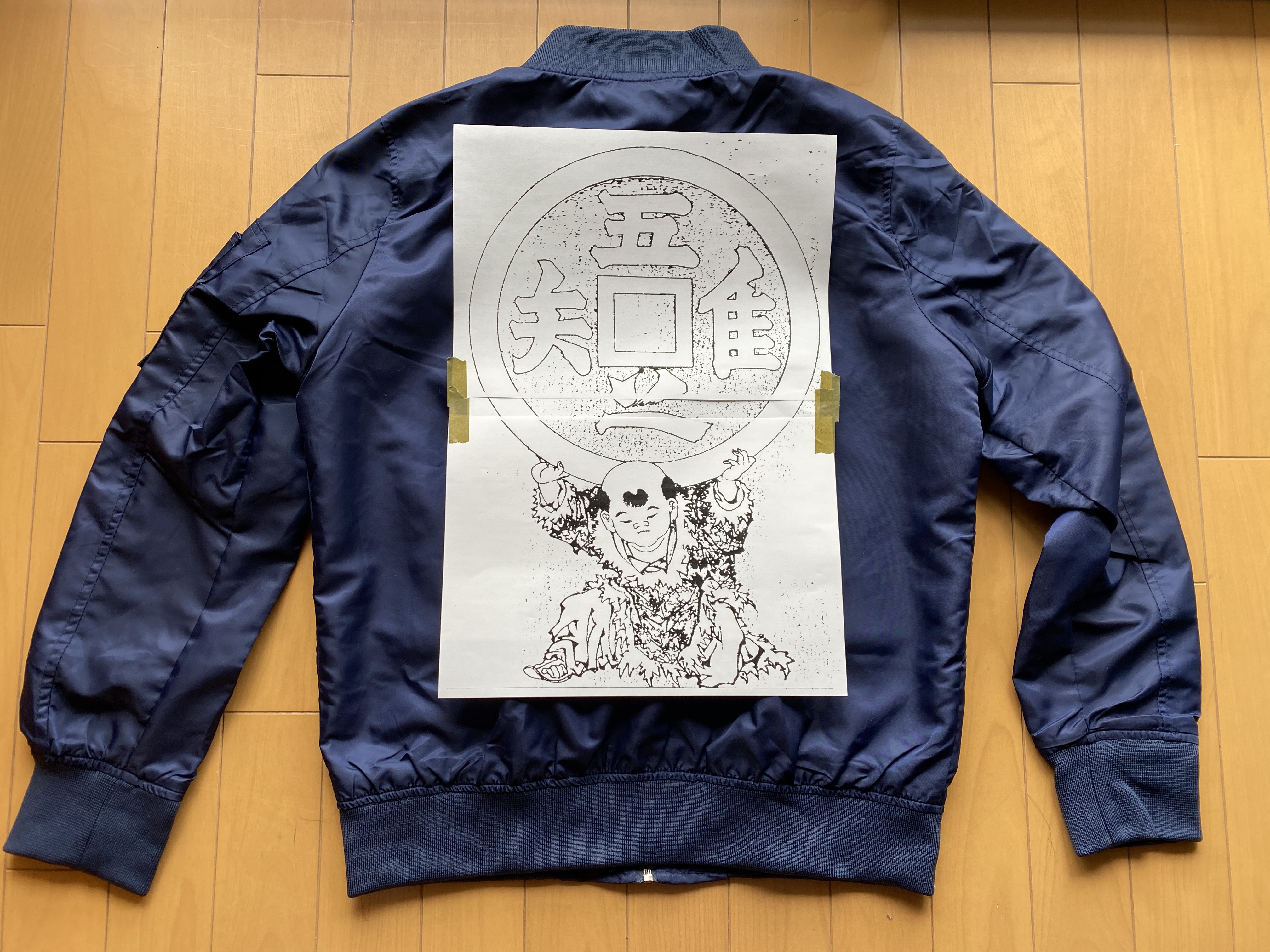 従兄(いとこ)のオーダーでジャケットの背中に付けます。