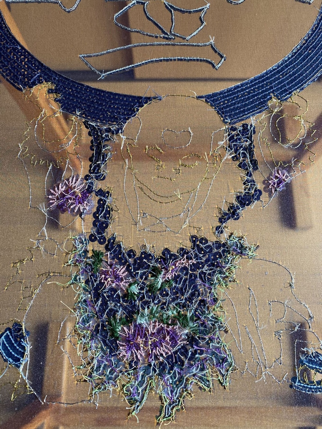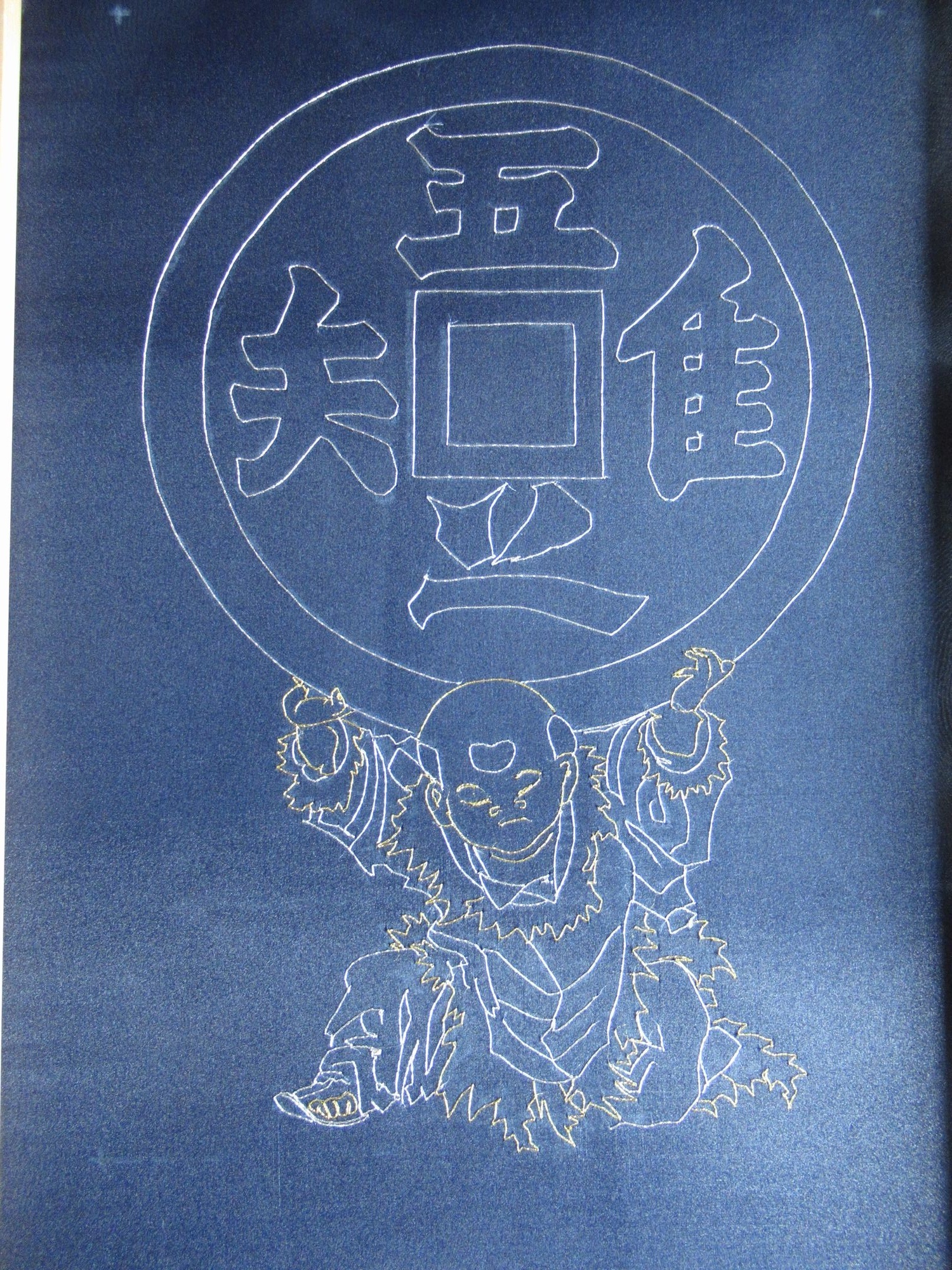 画竜点睛、表情と髪の毛を刺繍します。