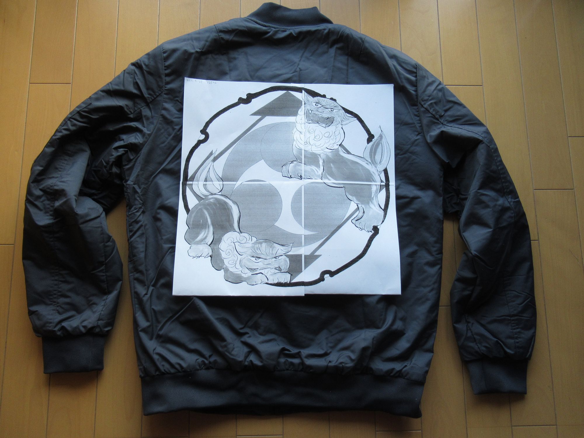 実物大のコピーをジャケットの背中に合わせます。